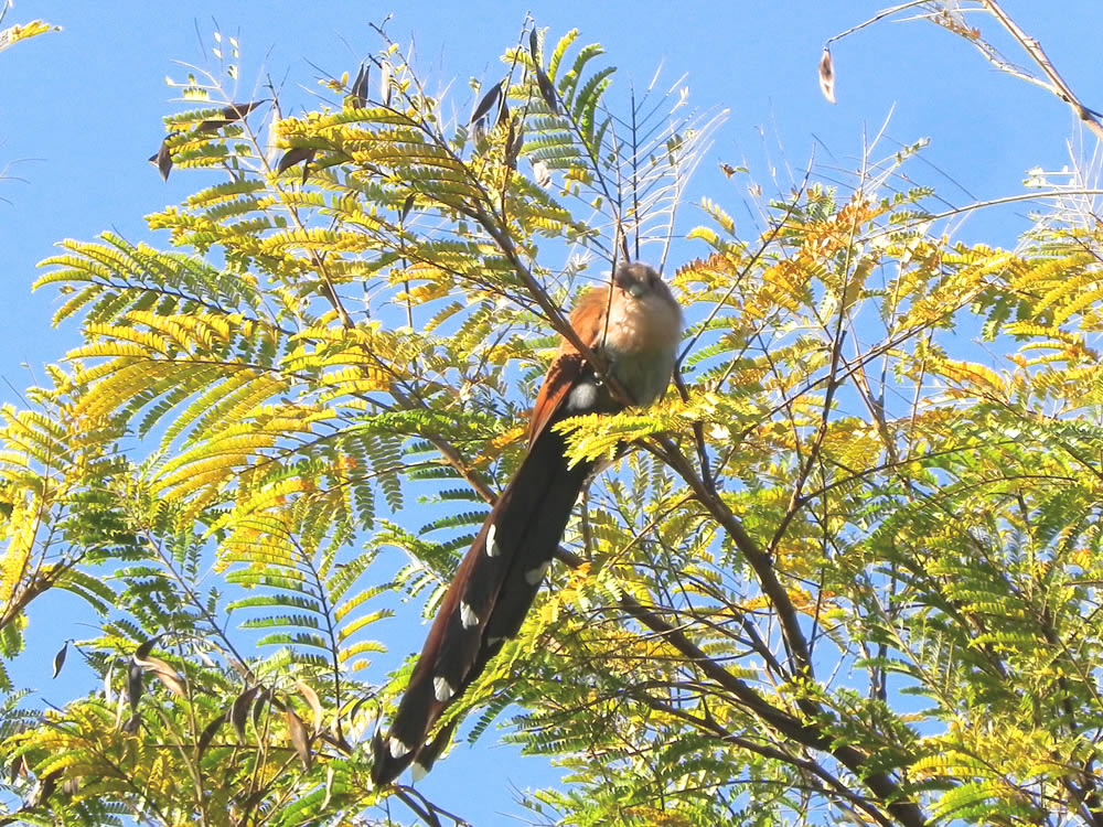 Sua cauda excepcionalmente grande a torna inconfundível, mede cerca de 50cm (contando a cauda).