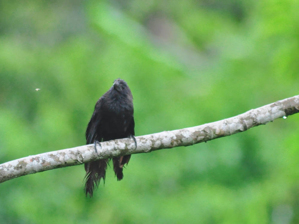 Corpo franzino - 36 centímetros, preto uniforme, de bico alto, forte e curto. Cauda comprida e graduada. Apesar de formar casais, vive sempre em bandos, ocupando territórios coletivos durante todo o ano. São aves extremamente sociáveis. Tem grande habilidade em pular e correr pela ramagem. O cheiro do corpo é forte e característico, perceptível para nós a vários metros e capaz de atrair morcegos hematófogos e animais carnívoros.