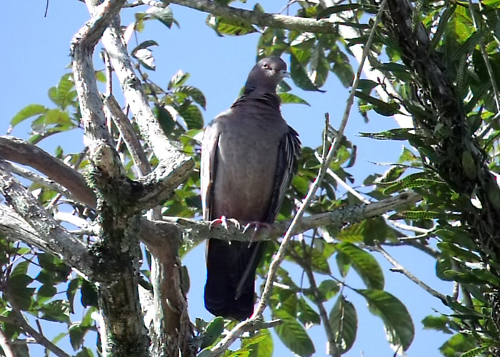 Uma das maiores espécies da família no País. Cabeça e partes de baixo marrom vinho, barriga pálida. Penas da nuca branco-prateado com pontas pretas. Manto superior roxo metálico, pontas escuras. Costas na maior parte cinza escuro. Asas marrom apagado, cobertura das asas cinza com pontas pálidas. Cauda preta. Pele orbital vermelha. A fêmea tem cor mais pálido.Mede cerca de 34 cm.