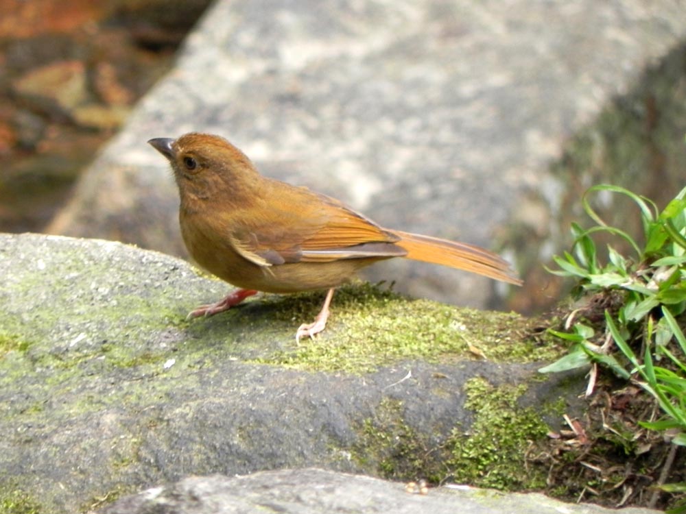 O macho é preto com uma crista laranja-avermelhada, a parte baixa das costas e o centro da garganta marrons; a fêmea é toda marrom. Vive aos pares ou em pequenos grupos fami-liares, quase sempre acompanhando bandos mistos de outros pássaros.