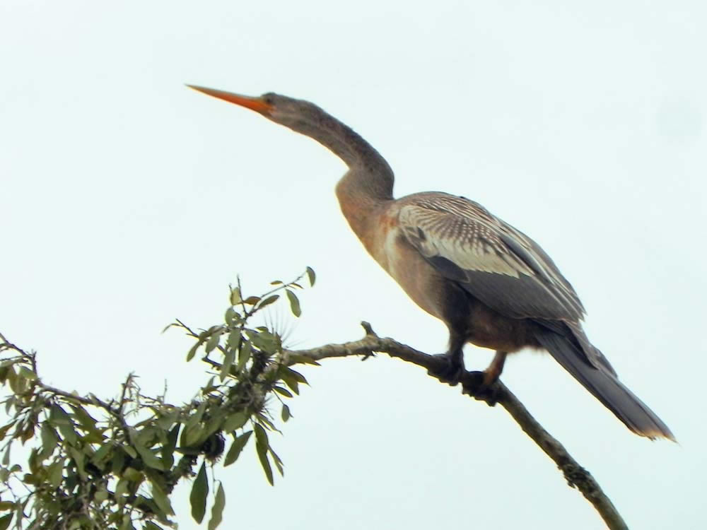 Ave aquática, lembra o biguá, mas apresenta asas esbranquiçadas (em tupi, “biguatinga” significa “biguá branco”), cauda maior e mais larga, pescoço mais estreito e comprido, além de bico reto, em forma de punhal. A espécie apresenta dimorfismo sexual, sendo que a fêmea difere do macho pela cor creme no pescoço, peito e dorso.