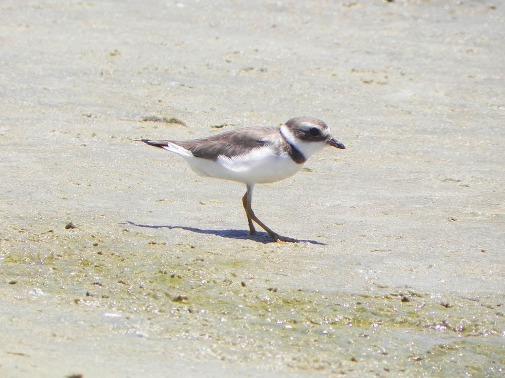 Chegam a medir até 18 cm de comprimento, com o alto da cabeça e partes superiores marrons, fronte, garganta, partes inferiores e colar nucal brancos. Além disso, possuem o bico curto de base amarelada e pernas amarelas, utiliza freqüentemente as praias brasileiras como locais de invernada e pontos de parada quando migram de países norte-americanos.