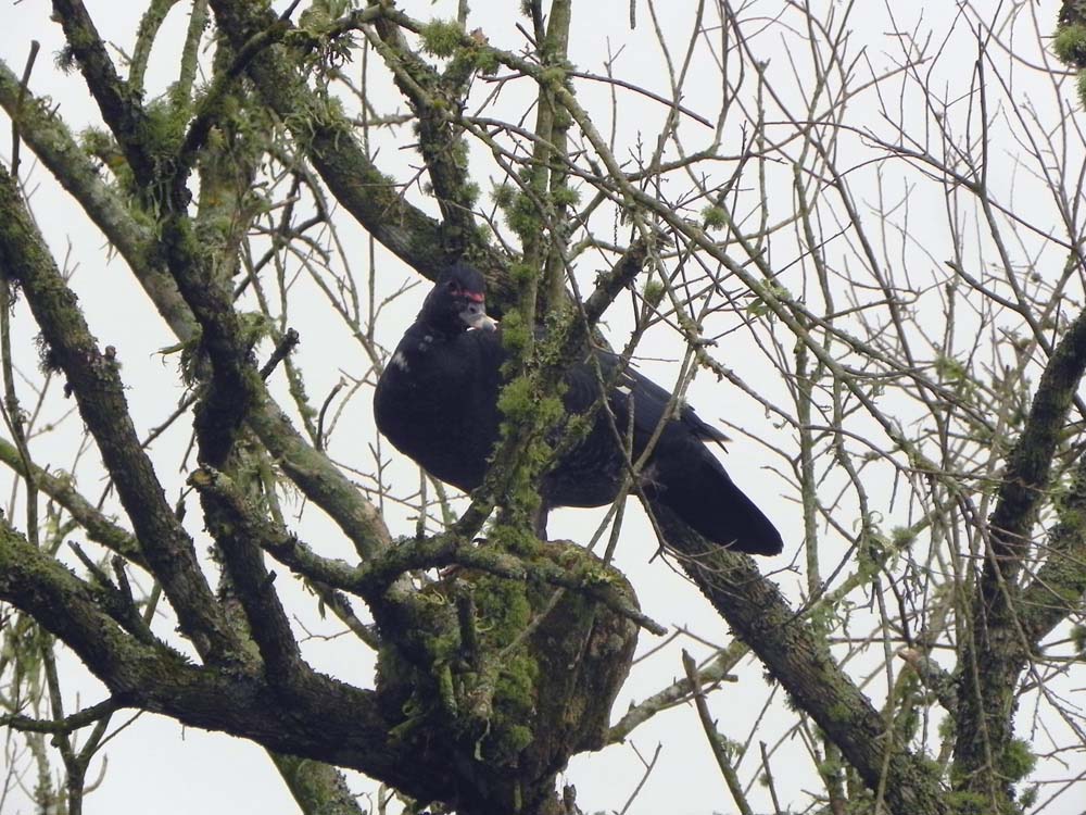 O macho é quase o dobro do tamanho das fêmeas e juvenis. Quando passam voando juntos, é possível distinguir os sexos no ar. Apresenta um comprimento de aproximadamente 85 centímetros, uma envergadura de 120 centímetros, um peso no macho de 2,2 kg, sendo que a fêmea pesa aproximadamente a metade. Ao contrário dos exemplares domésticos, as aves selvagens têm o corpo todo negro, com uma área branca nas asas. Esse branco é visível quando pousado. Ao voar, fica nítido e é bastante extenso. Aumenta com a idade, sendo uma pequena bola nas aves juvenis. Além do tamanho, os machos possuem outra característica exclusiva. A pele nua ao redor dos olhos vermelha, bem como uma carúncula da mesma cor acima da base do bico. Não emitem chamados em vôo ou pousados, somente um sibilo agressivo nas disputas entre machos, produzido pelo ar expulso com força pela boca entreaberta. A batida de asas é relativamente lenta e produz um sibilar notável, quando passam próximos.