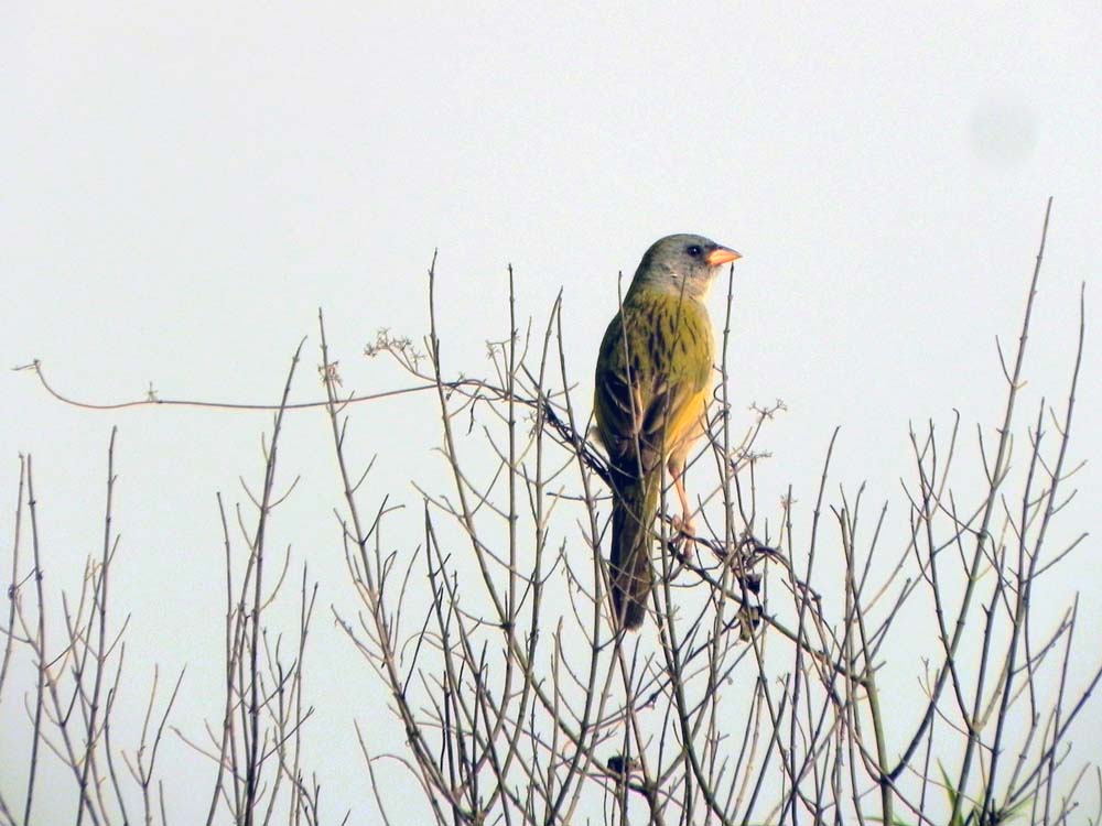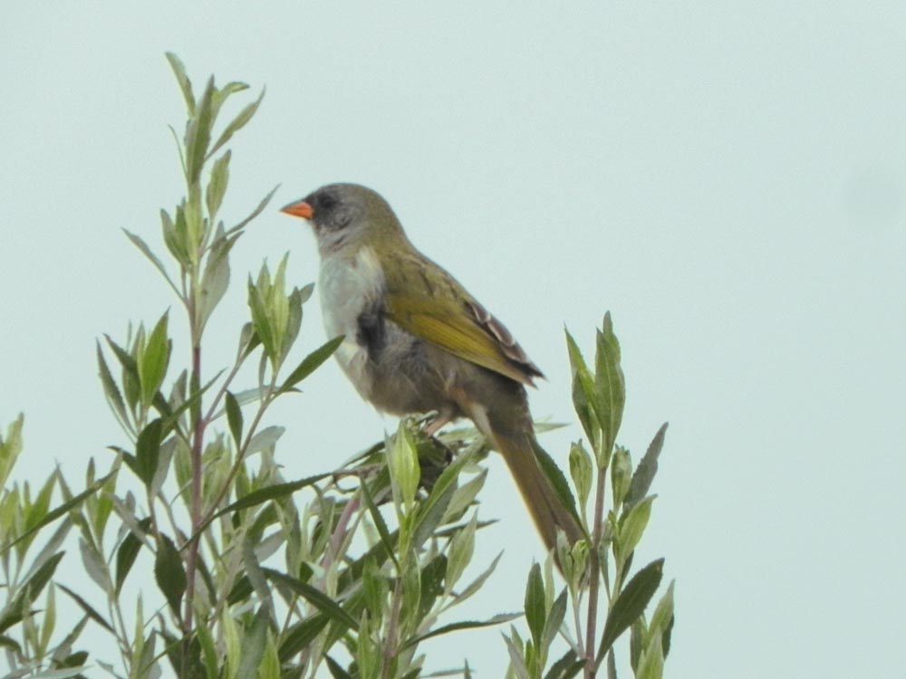 Mede 21,5 cm. Grande espécie meridional, campestre, de cauda longa, larga e arredondada e de plumagem cheia e macia, bico alaranjado vivo e mueeira negra; lado superior verde-oliva acinzentado, lados da cabeça anegrados, asas de cor verde intensa, encontro amarelo, partes inferiores cinzentas, lados e crisso pardacentos, abdome esbranquiçado; o imaturo é de garganta e pescoço anterior amarelo-enxofre, peito com manchas negras, lembrando o Canário-do-campo (Emberizoides herbicola).