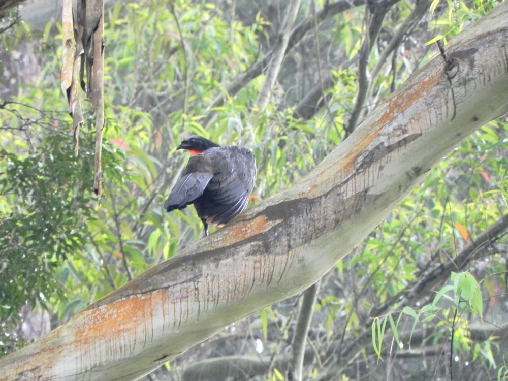 Pegamos o amigo do Wikiaves Walter Grube às 7 da manhã. A estrada que hora tinha asfalto e hora terra batida prometia, mesmo com o tempo frio e nebuloso. O Grube com seu equipamento novo de gravação de som logo dava as coordenadas e assim pudemos fotografar de cara um jacuaçu pousado em um eucalipto. Á medida que adentrávamos pela estrada surpresas iam aparecendo como o Suririe a Andorinha-serradora , espécies observadas e registradas pela primeira vez. Em trechos mais afastados, era possível ouvir a cantoria dos pássaros, avistar bandos de Tiês-pretos, em outros cruzavam nossa frente em vôos rápidos algumas aves entre elas o Tecelão, a tão desejada Araponga, que insistentemente martelava seu canto na mata, esta ficou só o som na lembrança . Paramos o carro em um determinado momento pois ouvimos um canto insistente e muito alto, depois de muita procura a grande/pequena surpresa, um beija-flor-de-papo-branco muito pequeno pousado em um galho de árvore cantava alto e alegremente. Na bifurcação onde a Estrada da Graciosa ainda mantinha seu traçado original, muitos registros foram feitos como o do Caneleiro, o Tecelão e a Tesoura-cinzenta, outros tantos ficarão pra outra data, pois a luz realmente não ajudou, como foi o caso dos Tangarás e Chupa-dentes.