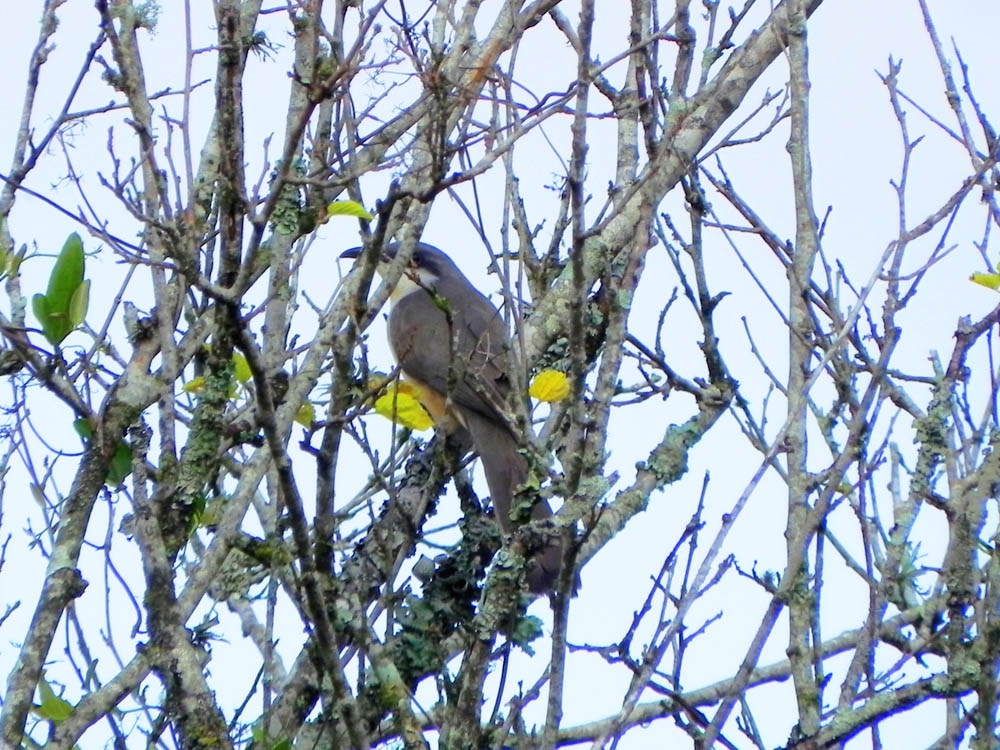 Sua vocalização é assim constituída como ventríloqua: “ga-ga-ga-go-go”; tendo uma seqüência decrescente de oito “goa”, bufando (canto); rosnar monossilábico, vocaliza também à noite.