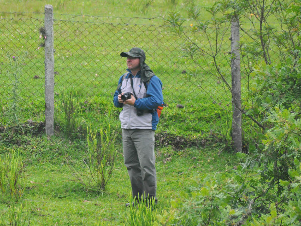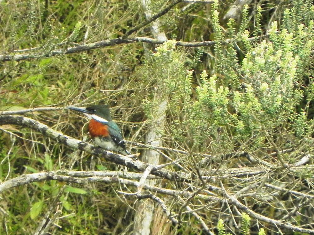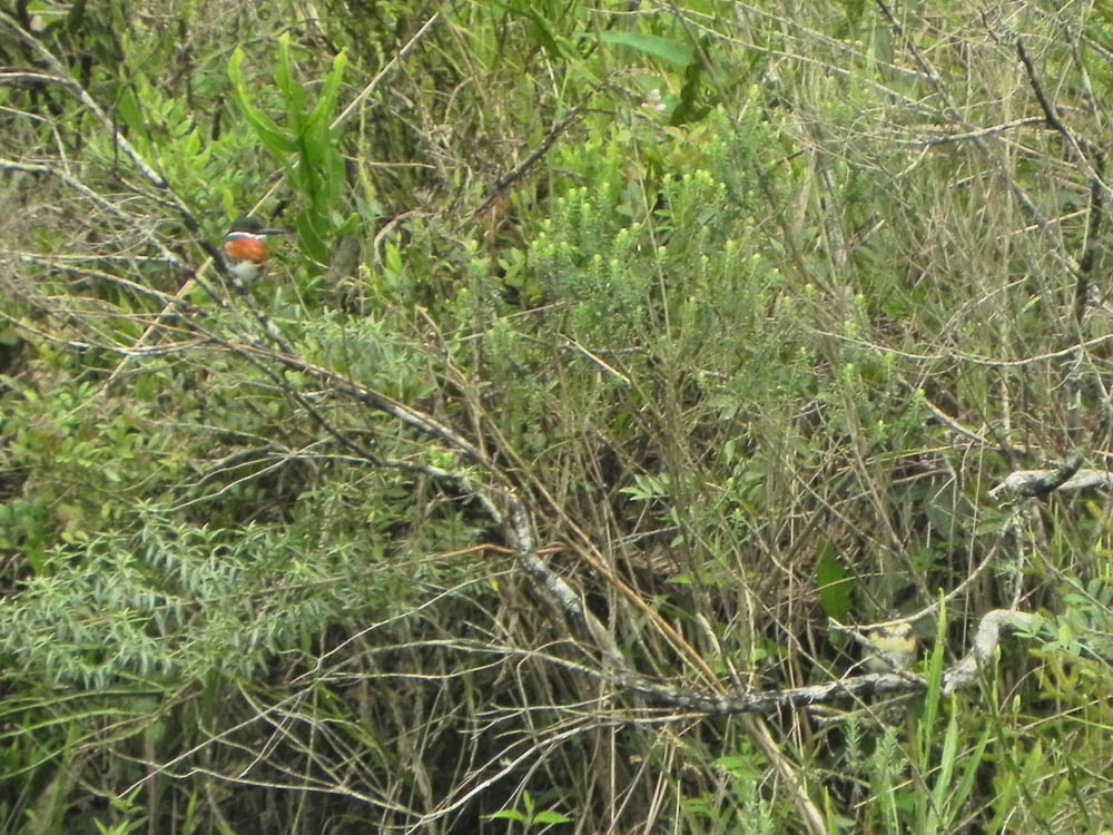 Ao entrar na chácara ja fomos recebidos pelos lindos Pavões que mostravam suas coloridas plumagens, preparamos nosso equipamento e descemos em direção à pedreira que tem um lago , ouvimos a vocalização de um casal de Martim-pescador-pequeno que dominam o local, aproveitamos para melhorar nosso registro, também vimos vários Socozinhos. Como a manhã estava nublada saímos da pedreira e fomos em direção aos campos onde Suiriris cantavam nas copas das árvores, Sanhaçus-cinzentos alimentavam-se nas árvores frutíferas, Peiticas faziam voos para pegar insetos no ar , Tico-ticos cruzavam nossa frente frequentemente e até uma Sabiá-poca pousou tranquila parecendo querer ser fotografada. Eram várias espécies mas todas já registradas então somente aproveitamos o passeio.