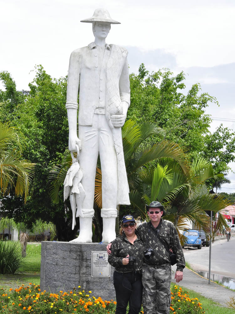 Parece que o clima parecia querer melhorar e então, o próximo ponto de observação foi o ponto de embarque do ferry-boat. Nesse local, já havíamos registrado o Sanhaçu-coqueiro e tantos outros. Dessa vez, registramos uma Garça-azul jovem, a Peitica e o sempre fotogênico casal de Corujas-buraqueiras. Resolvemos então tentar registrar melhor o Savacu-de-coroado na região do mangue. Encontramos um local que dava acesso ao manguezal, mas nada do Savacu-coroado, somente o Savacu comum. Nesse local, observamos um Tiê-sangue que apareceu para nos deixar estasiados com seu colorido vermelho. Mas infelizmente este maravilhoso pássaro não nos permitiu seu registro. Entretanto, conseguimos registrar um Filipe que tomava sol (que finalmente apareceu) e secava suas penas. Já no retorno ao quartel-general, paramos para fazermos registros diante da estátua do pescador. Após o almoço, já com a chuva que se anunciava, retornamos a Curitiba.
