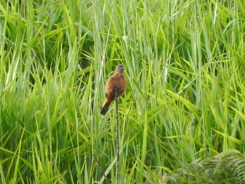 Como seu próprio nome científico diz, em seu corpo predomina a cor ferrugem com tons variando para cinza escuro, as asas e a ponta da cauda são cinza escuras com detalhes em ferrugem, o peito é mais avermelhado que o dorso e a cabeça.