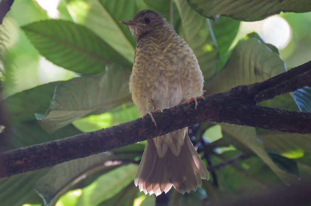 O juvenil com o dorso pintalgado de bolas amarronzadas, sem a garganta branca bem delimitada. Pontos marrons no peito e barriga. Mede cerca de 22-23 cm. Não apresenta dimorfismo sexual, sendo sua diferenciação feita apenas pelo canto, que é característica dos machos.