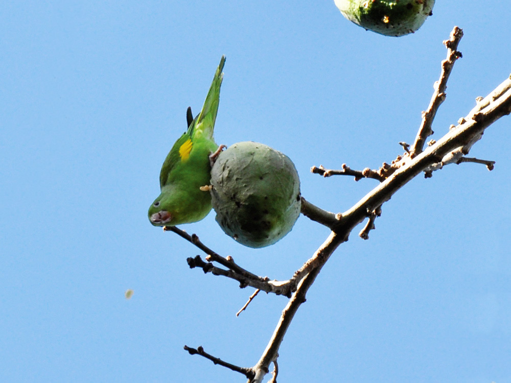 Para os desavisados será considerado como sendo o Periquito-rico (Brotogeris tirica), com o qual é extremamente parecido, exceto pela marca amarela no ombro. Para complicar é comum vê-lo na cidade de São Paulo junto a esses periquitos. Torna-se a espécie predominante mais para o norte e oeste do estado.