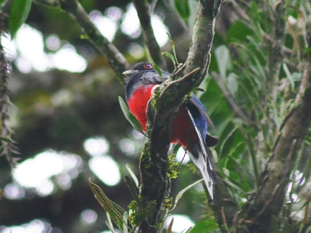 Nosso retorno já estava sendo feliz. No topo da montanha, é possível avistar ao longe, toda a serra. Paisagem para fazer qualquer um meditar sobre as maravilhas da natureza. Cascatas de águas límpidas brotam no meio da mata, indo bater contra as pedras no fundo do vale. Quase chegando ao fim da jornada, uma sabia-cica passa voando na frente do carro indo pousar entre galhos de um pinheiro. Bem raro achar esse exemplar, fizemos um registro, para constar! Ao chegarmos ao fim da jornada, ainda nos deparamos com um bando de Catirumbavas que felizes, bicavam laranjas à beira da estrada e um Surucuá-variado pousado, sereno, em um galho de araucária!