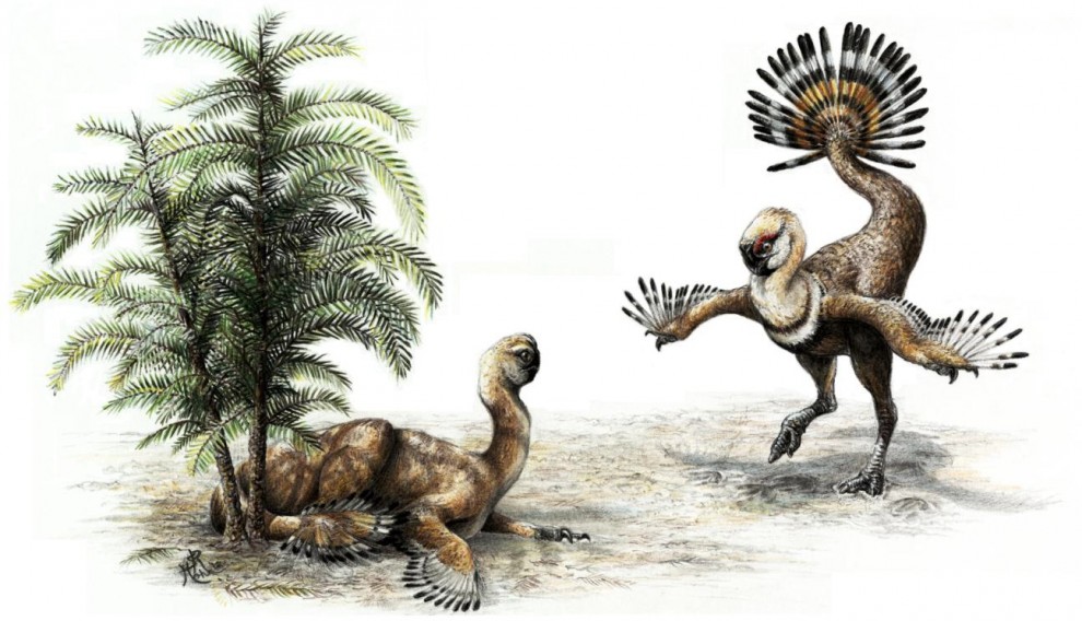 Um antigo dinossauro-ave poderia ter duas caudas , uma talvez para o vôo e outro para exibir para possíveis paceiros.