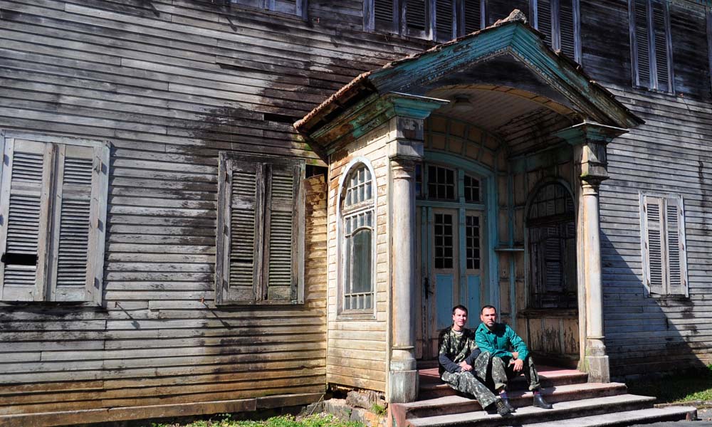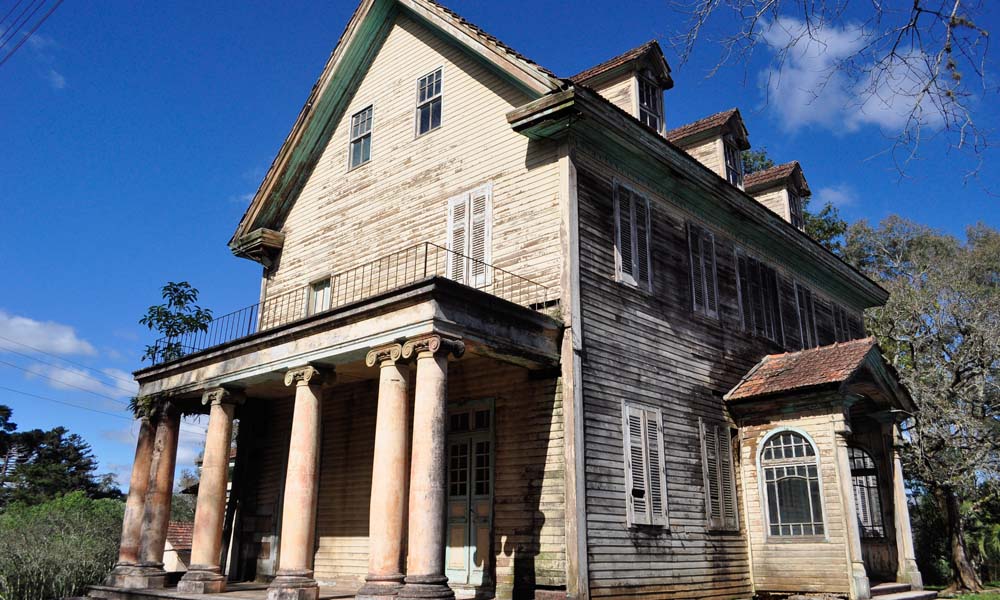 No final de semana de 25 de julho, combinamos uma viagem a Irati. Em contatos feitos com novos amigos de passarinhada, planejamos conhecer lugares diferentes para encontrar espécies que não ocorrem em nossa região. Em pesquisas feitas, relacionamos algumas espécies que intencionávamos encontrar na cidade. Prioritariamente queríamos ver de perto uma Coruja-da-igreja, que há muito tempo sonhávamos registrar. Nosso amigo Elizeu Czekaski informou que teria disponibilidade de ser nosso anfitrião nessa saída e nos apresentar alguns locais bastante interessantes. Acordamos sair no sábado e no domingo pela manhã, sendo que no sábado, destinamos à saída para explorar a Floresta Nacional de Irati (FLONA); uma unidade de conservação e pesquisa pertencente ao Ministério do Meio Ambiente. Fazia um frio de rachar, e às 7h30 min partimos para a FLONA. As distâncias são pequenas e antes das 8 horas passamos pela portaria. No local, funcionava uma antiga serraria e ainda é possível observar as construções antigas, onde residiam os funcionários da empresa, a escola e a igreja da localidade. Como o clima não favoreceu muito à entrada na mata pelas trilhas, optamos permanecer ao longo da estrada que corta o parque. Nessa incursão, encontramos algumas espécies. Ficamos na FLONA até perto das 11 horas e depois o amigo Eliseu nos levou à conhecer as instalações do IAPAR em Fernandes Pinheiro. Qual foi nossa surpresa ao encontrar uma mansão abandonada, construída por um rico proprietário da madeireira a família Xavier de Miranda, conhecida como Palácio de Pinho, construída em 1912 e tombada como patrimônio histórico na década de 1990. Hoje ela está entregue literalmente às abelhas que ai fizeram dezenas de colmeias. Além disso, sua aparência remete àqueles filmes de terror americanos com as casas mal-assombradas. Brincadeiras à parte, a construção é imponente e certamente, no passado deve ter sido uma das residências mais lindas da região.