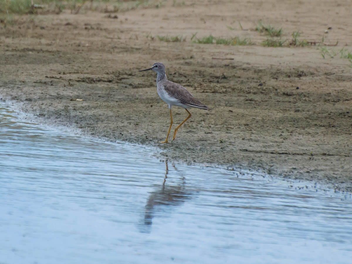 Uma maneira de diferenciá-lo do Maçarico-de-perna-amarela (Tringa flavipes) é através do seu porte maior e do seu bico mais longo e levemente curvado para cima.