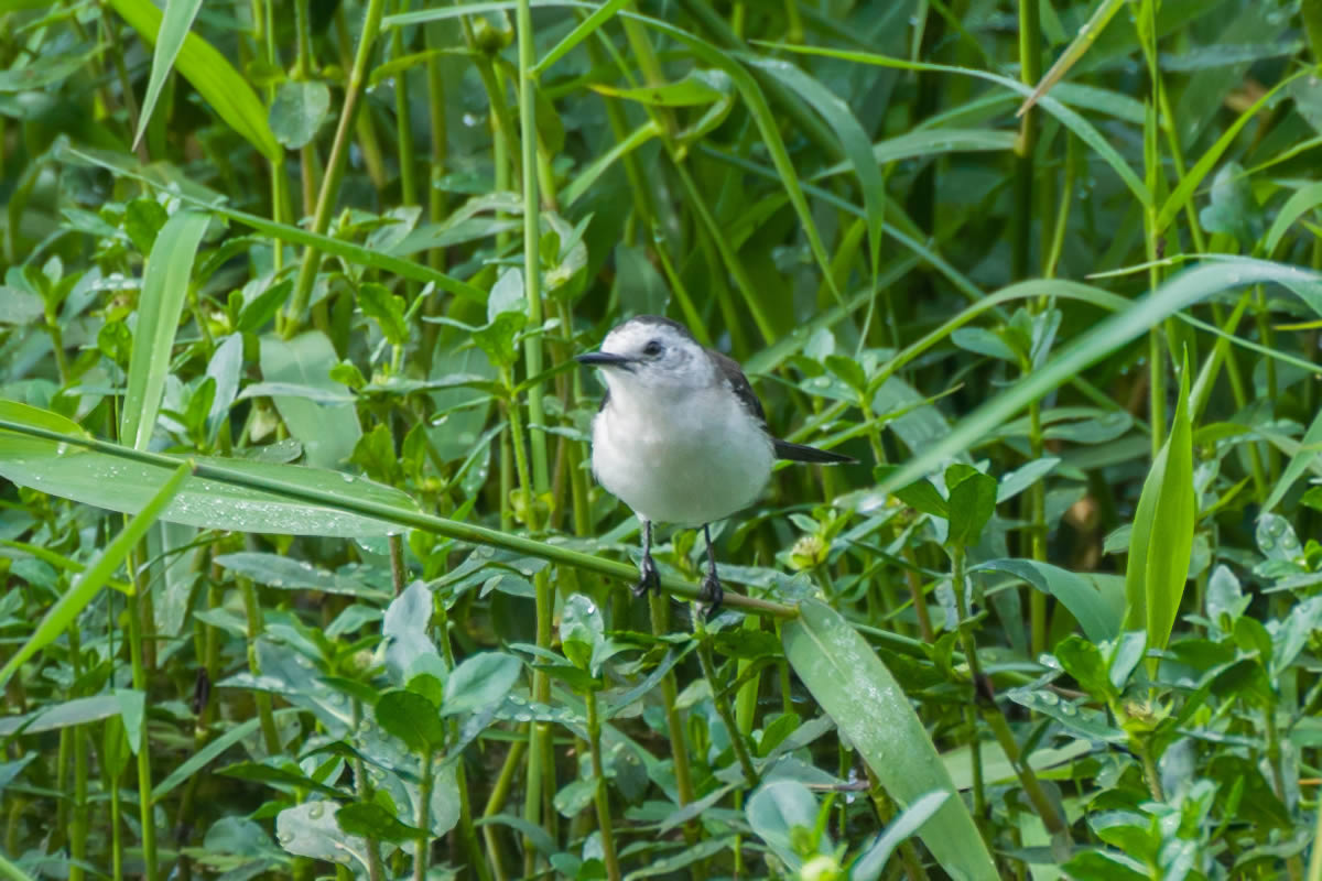Mede 14 centímetros. Apresenta coloração preta nas partes superiores, com a parte posterior da coroa, nuca, manto, asas e cauda pretas. Testa, face, peito, ventre e crisso são brancos. As asas possuem duas barras alares brancas estreitas. Íris, bico e pernas escuras. Esta espécie é encontrada em águas paradas tomadas por tapetes de vegetação flutuante, como aguapés e vitórias régias em tanques e lagos e nas áreas abertas adjacentes. Também, ocorre em banhados, pantanais, brejos, campos e pastos alagados.