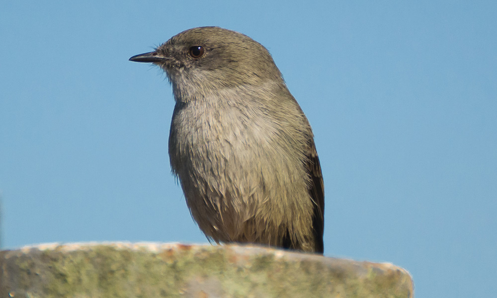Mede cerca de 17,6 centímetros. Tem píleo cinzento, e seu bico é longo, forte e adunco. Pode ser encontrada na mata e nas copas. Costuma abanar a cauda para frente e para trás.